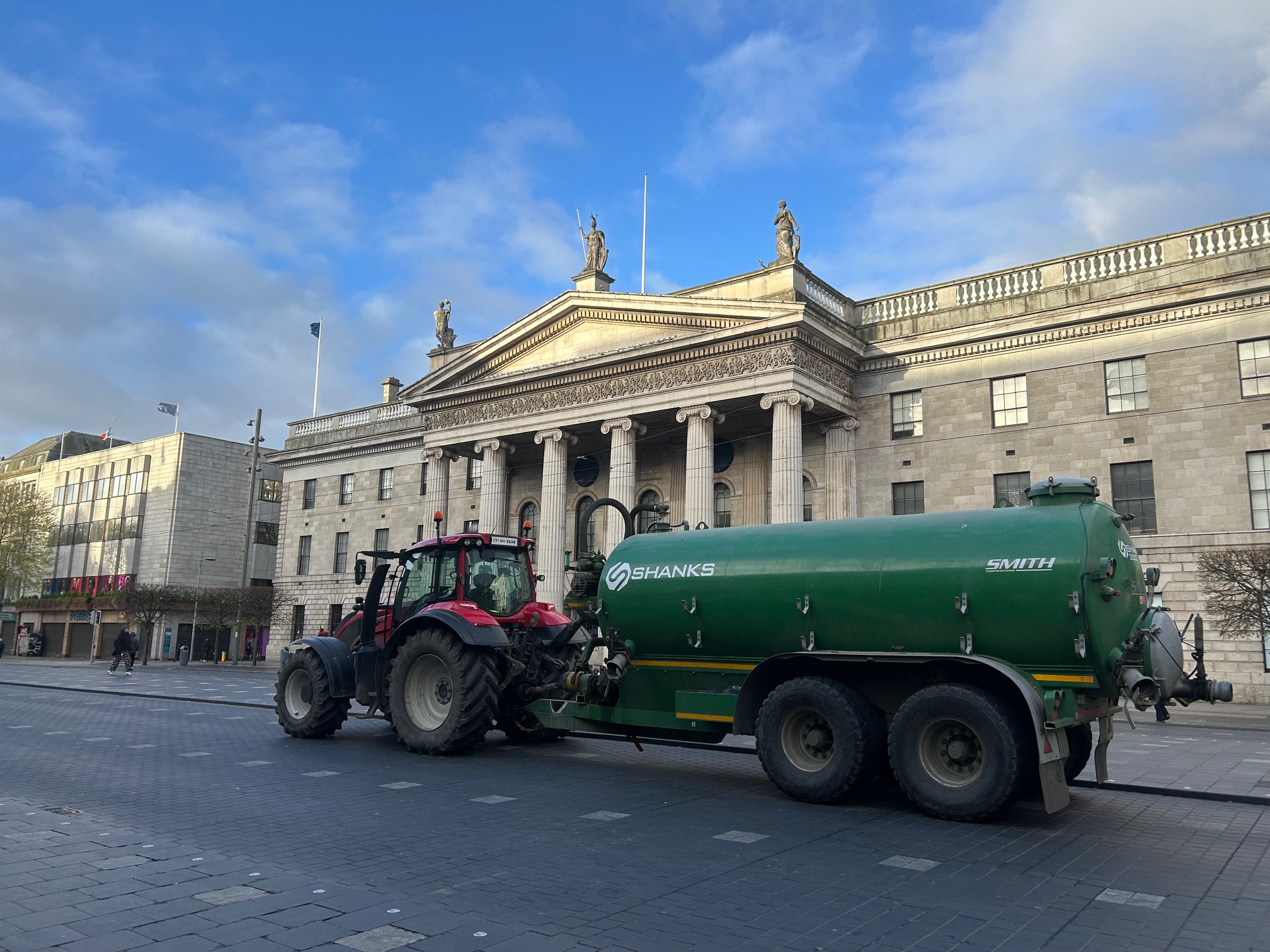 Around 20 large vehicles and tractors remained on O’Connell Street and the nearby quays in Dublin at 8am on Sunday, with dozens of protest participants and supporters.